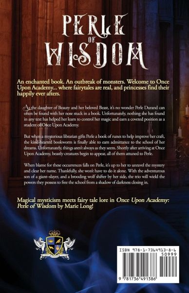 An enchanted book. An outbreak of monsters. Welcome to Once Upon Academy... where fairytales are real, and princesses find their happily ever afters. As the daughter of Beauty and her beloved Beast, it's no wonder Perle Durand can often be found with her nose stuck in a book. Unfortunately, nothing she has found in any text has helped her learn to control her magic and earn a coveted position as a student of Once Upon Academy. But when a mysterious librarian gifts Perle a book of runes to help improve her craft, the kind-hearted bookworm is finally able to earn admittance to the school of her dreams. Unfortunately, things aren't always as they seem. Shortly after arriving at Once Upon Academy, beastly creatures begin to appear, all of them attuned to Perle. When blame for these occurrences falls on Perle, it's up to her to unravel the mystery and clear her name. Thankfully, she won't have to do it alone. With the adventurous son of a giant-slayer, and a brooding wolf shifter by her side, the trio will wield the powers they possess to free the school from a shadow of darkness closing in. Magical mysticism meets fairy tale lore in Once Upon Academy: Perle of Wisdom by Marie Long!
