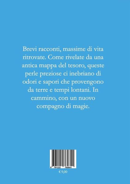 Brevi racconti, massime di vita ritrovate. Come rivelate da una antica mappa del tesoro, queste perle preziose ci inebriano di odori e sapori che provengono da terre e tempi lontani. In cammino, con un nuovo compagno di magie.