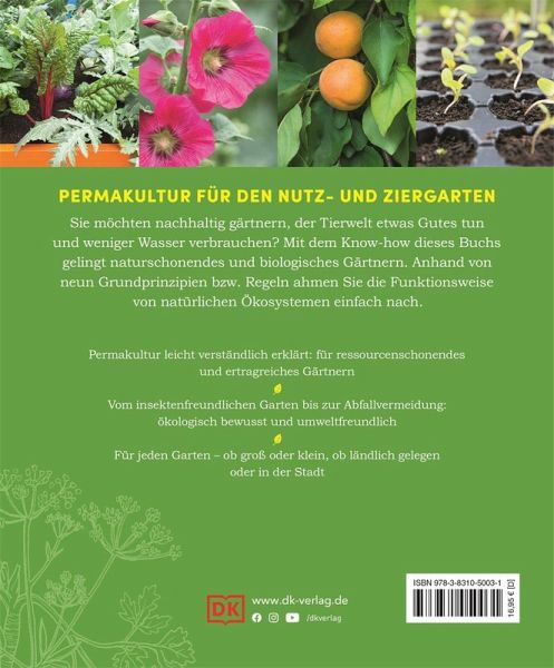 Permakultur ist eine Methode, bei der durch das Nachahmen natürlicher Ökosysteme Ressourcen geschont werden. Dieser Ratgeber bietet den perfekten Einstieg ins nachhaltige Gärtnern und zeigt, wie man ganz einfach einen umweltfreundlichen und ertragreichen Permakultur-Garten anlegen kann. Ob groß oder klein, urban oder ländlich: Mit nur neun Grundprinzipien lässt sich jeder Garten in ein ökologisches Paradies verwandeln. So können Sie im Garten vorhandene Ressourcen optimal nutzen und sparsam mit Wasser umgehen. Ein kompaktes Permakultur-Buch mit leicht verständlichen Anleitungen für Hobbygärtner_innen, die eine ökologisch bewusste Lebensweise im eigenen Garten umsetzen wollen.