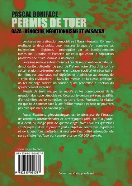 Le silence sur la situation génocidaire à Gaza interpelle. Comment expliquer le deux poids deux mesures lorsque l'on compare les indignations - légitimes - provoquées par les bombardements russes sur l'Ukraine et l'omerta sur ceux qui visent la population palestinienne civile soumise à un blocus ?Le drame se noue autour d'un cocktail de sentiments de culpabilité, de solidarité culturelle, de peur de l'islam voire d'hostilité contre cette religion, présentée comme un danger sociétal et sécuritaire, de mémoires coloniales mal digérées et d'adhésion au concept de choc des civilisations . Dans les médias et la classe politique, un tel mélange suscite un soutien quasi généralisé à l'action du gouvernement israélien.Permis de tuer analyse les motifs et les conséquences de la négation du risque génocidaire. Ceux qui le dénoncent sont qualifiés d'antisémites ou de complices du terrorisme. Pourtant, la réalité est que nous sommes face à une faillite morale ; et nous ne pourrons pas dire que nous ne savions pas...