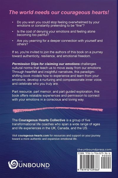 What if your emotions were the key to living a fuller, freer life? You deserve to live a life where you feel deeply, love boldly, and show up as the person you were always meant to be. This is your permission slip to begin. We've all been taught to push through discomfort, silence our feelings, and keep moving forward. But what if the very emotions you've been trying to suppress are the missing pieces to your sense of peace, purpose, and joy? Permission Slips for Claiming Our Emotions invites you to pause, breathe, and take a radically different approach to life-one where you claim your emotions as trusted allies instead of obstacles to overcome. This book is for anyone who's ever felt the weight of being "too much" or "not enough." It's for those navigating the tension between staying safe and daring to dream, who want to feel more deeply connected to themselves and others but don't know where to begin. If you've ever wondered what it would take to truly feel alive-not just survive-this is your permission slip to do exactly that. How this book will change your life: Through heartfelt stories, practical tools, and guided reflections, Permission Slips will help you: Stop judging your emotions and start seeing them as a source of strength. Rewrite the story that says emotional vulnerability makes you fragile instead of free. Discover the peace that comes from truly accepting yourself-messy feelings and all. Learn how to navigate life's uncertainties with courage, grace, and responsibility. What's Inside: This book is your emotional toolkit, brimming with actionable insights and soulful guidance to help you unlock the full spectrum of who you are. Inside, you'll find: A new way to see your emotions: Instead of running from them, learn to decode their messages and embrace them as powerful guides. Deeply personal stories: Shared by the authors, these stories create a sense of connection, showing you that you're never alone in your experiences. Practical exercises that work in real life: Gentle, yet powerful practices to help you build emotional resilience, release old patterns, and move toward a life of purpose and joy. Permission slips for every step of the journey: Simple, profound affirmations that give you the courage to honor your feelings and take bold steps forward. A bridge between emotional healing and meaningful action: Gain the clarity you need to align your inner world with the outer life you desire, whether it's in your relationships, career, or personal growth. Permission Slips is more than a book-it's a gentle hand on your shoulder, a reminder that you don't have to do this alone, and an invitation to reclaim the parts of yourself you thought were too much or too broken. Welcome to the journey! About the authors: The Courageous Hearts Collective is a group of five transformational life coaches. Holly McLoughlin is in the UK, Marna Fujimoto-Pihl is in Canada, with Owen Sea Luckey, Maggie Pierce, and Deborah Thornton all in the US. They were brought together by a shared journey of emotional resilience. Meeting weekly since 2021, they've cultivated a practice of being with all emotions-witnessing, naming, and validating feelings with deep compassion. This collaborative book emerged from their rich discussions, stories, and poems, offering insights into healing, growing emotional capacity, and transforming relationships. Their intention is to model the courage to embrace all parts of ourselves and provide permission slips to guide readers toward deeper self-connection and emotional wisdom.