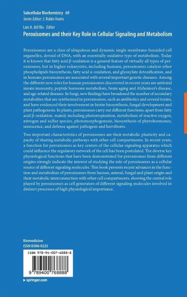 Peroxisomes are a class of ubiquitous and dynamic single membrane-bounded cell organelles, devoid of DNA, with an essentially oxidative type of metabolism. In recent years it has become increasingly clear that peroxisomes are involved in a range of important cellular functions in almost all eukaryotic cells. In higher eukaryotes, including humans, peroxisomes catalyze ether phospholipids biosynthesis, fatty acid alpha-oxidation, glyoxylate detoxification, etc, and in humans peroxisomes are associated with several important genetic diseases. In plants, peroxisomes carry out the fatty acid beta-oxidation, photorespiration, metabolism of ROS, RNS and RSS, photomorphogenesis, biosynthesis of phytohormones, senescence, and defence against pathogens and hervidores. In recent years it has been postulated a possible contribution of peroxisomes to cellular signaling. In this volume an updated view of the capacity and function of peroxisomes from human, animal, fungal and plant origin as cell generators of different signal molecules involved in distinct processes of high physiological importance is presented.