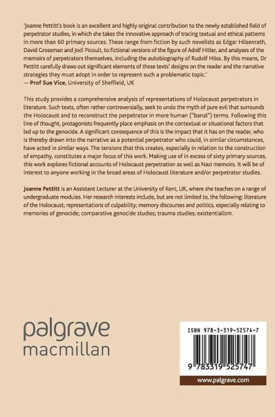 This study provides a comprehensive analysis of representations of Holocaust perpetrators in literature. Such texts, often rather controversially, seek to undo the myth of pure evil that surrounds the Holocaust and to reconstruct the perpetrator in more human ("banal") terms. Following this line of thought, protagonists frequently place emphasis on the contextual or situational factors that led up to the genocide. A significant consequence of this is the impact that it has on the reader, who is thereby drawn into the narrative as a potential perpetrator who could, in similar circumstances, have acted in similar ways. The tensions that this creates, especially in relation to the construction of empathy, constitutes a major focus of this work. Making use of in excess of sixty primary sources, this work explores fictional accounts of Holocaust perpetration as well as Nazi memoirs. It will be of interest to anyone working in the broad areas of Holocaust literature and/or perpetrator studies.