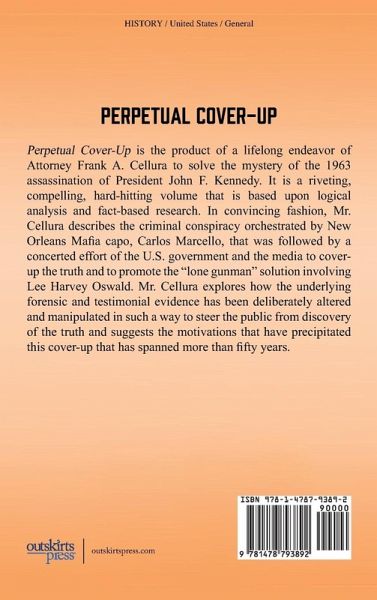 Perpetual Cover-Up is the product of a lifelong endeavor of Attorney Frank A. Cellura to solve the mystery of the 1963 assassination of President John F. Kennedy. It is a riveting, compelling, hard-hitting volume that is based upon logical analysis and fact-based research. In convincing fashion, Mr. Cellura describes the criminal conspiracy orchestrated by New Orleans Mafia capo, Carlos Marcello, that was followed by a concerted effort of the U.S. government and the media to cover-up the truth and to promote the "lone gunman" solution involving Lee Harvey Oswald. Mr. Cellura explores how the underlying forensic and testimonial evidence has been deliberately altered and manipulated in such a way to steer the public from discovery of the truth and suggests the motivations that have precipitated this cover-up that has spanned more than fifty years.