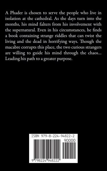 A Phader is chosen to serve the people who live in isolation at the cathedral. As the days turn into the months, his mind falters from his involvement with the supernatural. Even in his circumstances, he finds a book containing strange riddles that can twist the living and the dead in horrifying ways. Though the macabre corrupts this place, the two curious strangers are willing to guide his mind through the chaos... Leading his path to a greater purpose.