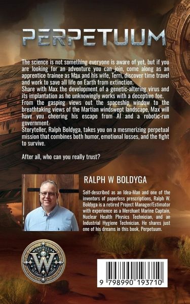 Author Ralph W. Boldyga has come out with his first Science-Fiction novel. The science is not something everyone is aware of yet, but if you are looking for an adventure you can join, come along as an apprentice trainee as Max and his wife, Terri, discover time travel and work to save all life on Earth from extinction. Share with Max the development of a genetic-altering virus and its implantation as he unknowingly works with a deceptive foe. From the gasping views out the spaceship window to the breathtaking views of the Martian windswept landscape, Max will have you cheering his escape from AI and a robotic-run government. Storyteller, Ralph Boldyga, takes you on a mesmerizing perpetual mission that combines both humor, emotional losses, and the fight to survive. After all, who can you really trust?