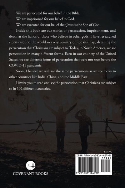 We are persecuted for our belief in the BibleWe are imprisoned for our belief in God.We are executed for our belief that Jesus is the Son of God.Inside this book are our stories of persecution, imprisonment, and death at the hands of those who believe in other gods. I have researched stories around the world in every country on today's map, detailing the persecution that Christians are subject to. Today, in North America, we see persecution in many different forms. Even in our country of the United States, we see different forms of persecution that were not seen before the COVID-19 pandemic.Soon, I believe we will see the same persecutions as we see today in other countries like India, China, and the Middle East.I invite you to read and see the persecution that Christians are subject to in 102 different countries.