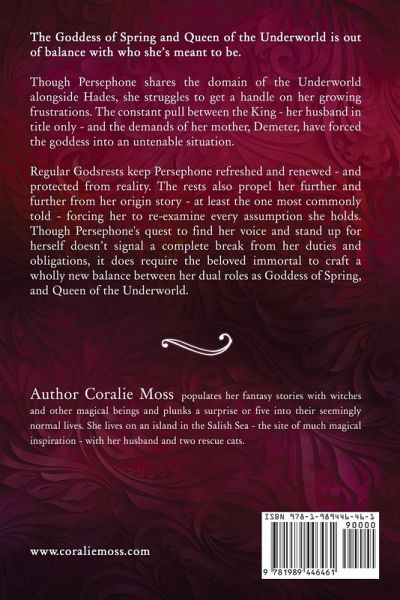 The Goddess of Spring and Queen of the Underworld is out of balance with who she's meant to be. As Persephone shares domain of the Underworld alongside Hades, she struggles to get a handle on her growing frustrations. The constant pull between the King - her husband in title only - and the demands of her mother, Demeter, have forced Persephone into an untenable situation. Regular Godsrests keep her refreshed and renewed - and protected from reality. The rests also propel her further and further from her origin story - at least the one most commonly told - forcing Persephone to re-examine every assumption she has about herself. Though her quest to find her voice and stand up for herself doesn't signal a complete break from her duties and obligations, it does require the beloved immortal to craft a wholly new balance between her dual roles as Goddess of Spring, and Queen of the Underworld.
