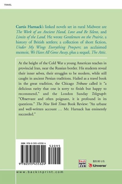 At the height of the Cold War a young American teaches in provincial Iran, near the Russian border. His students reveal their inner selves, their struggles to be modern, while still caught in ancient Persian traditions. Hailed as a travel book in the great tradition, the Chicago Tribune called it "a delicious rarity that one is sorry to finish but happy to recommend," and the London Sunday Telegraph: "Observant and often poignant, it is profound in its questions." The New York Times Book Review: "An urbane and well-written account . Mr. Harnack has eminently succeeded."