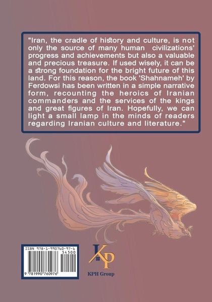 "Iran, the cradle of history and culture, is not only the source of many human civilizations' progress and achievements but also a valuable and precious treasure. If used wisely, it can be a strong foundation for the bright future of this land. For this reason, the book 'Shahnameh' by Ferdowsi has been written in a simple narrative form, recounting the of Iranian commanders and the services of the kings and great figures of Iran. Hopefully, we can light a small lamp in the minds of readers regarding Iranian culture and literature."