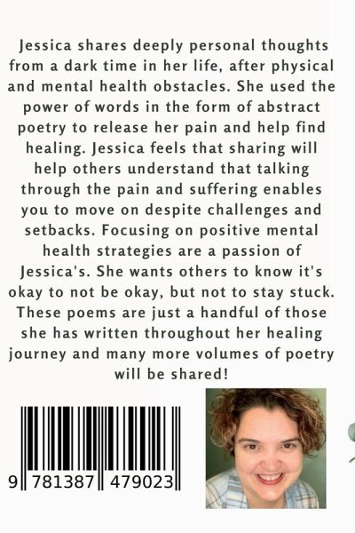 This book of poetry was written during a very difficult time in the Author's life and the poems are real, raw and unedited. Dealing with the after effects of physical and emotional trauma have inspired Jessica to share her pain and transformation. Jessica had no intention of publishing this private work, however, she feels that it will help others to heal also. Jessica want others to know that it is possible to heal through writing and share it with others. Her hope is that you will resonate with her words and know that you are not alone. If you are struggling and suffering, there is help available and it's okay to NOT be okay. Your Mental Health Matters and there is always sun after a storm.