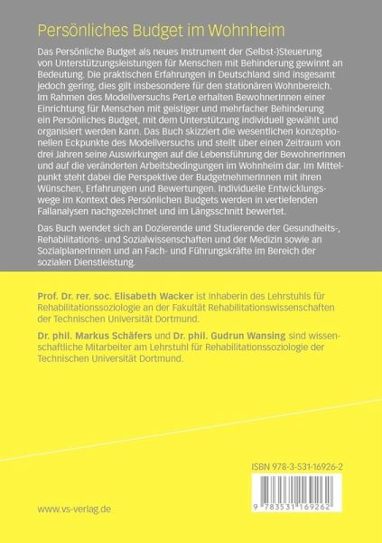 Das Persönliche Budget als neues Instrument der (Selbst-)Steuerung von Unterstützungsleistungen für Menschen mit Behinderung gewinnt an Bedeutung. Die praktischen Erfahrungen in Deutschland sind insgesamt jedoch gering, dies gilt insbesondere für den stationären Wohnbereich. Im Rahmen des Modellversuchs PerLe erhalten BewohnerInnen einer Einrichtung für Menschen mit geistiger und mehrfacher Behinderung ein Persönliches Budget, mit dem Unterstützung individuell gewählt und organisiert werden kann. Das Buch skizziert die wesentlichen konzeptionellen Eckpunkte des Modellversuchs und stellt über einen Zeitraum von drei Jahren seine Auswirkungen auf die Lebensführung der BewohnerInnen und auf die veränderten Arbeitsbedingungen im Wohnheim dar. Im Mittelpunkt steht dabei die Perspektive der BudgetnehmerInnen mit ihren Wünschen, Erfahrungen und Bewertungen. Individuelle Entwicklungswege im Kontext des Persönlichen Budgets werden in vertiefenden Fallanalysen nachgezeichnet und im Längsschnitt bewertet.