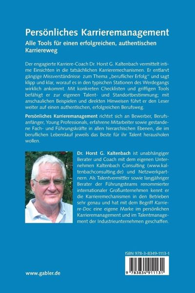 Der engagierte Karriere-Coach Dr. Horst G. Kaltenbach vermittelt intime Einsichten in die tatsächlichen Karrieremechanismen. Er entlarvt gängige Missverständnisse zum Thema "beruflicher Erfolg" und sagt klipp und klar, worauf es in den typischen Stationen des Werdegangs wirklich ankommt. Mit konkreten Checklisten und griffigen Tools befähigt er zur eigenen Talent- und Standortbestimmung; mit anschaulichen Beispielen und direkten Hinweisen führt er den Leser weiter auf einen authentischen, erfolgreichen Berufsweg.