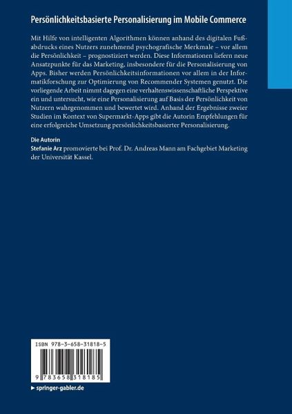 Mit Hilfe von intelligenten Algorithmen können anhand des digitalen Fußabdrucks eines Nutzers zunehmend psychografische Merkmale - vor allem die Persönlichkeit - prognostiziert werden. Diese Informationen liefern neue Ansatzpunkte für das Marketing, insbesondere für die Personalisierung von Apps. Bisher werden Persönlichkeitsinformationen vor allem in der Informatikforschung zur Optimierung von Recommender Systemen genutzt. Die vorliegende Arbeit nimmt dagegen eine verhaltenswissenschaftliche Perspektive ein und untersucht, wie eine Personalisierung auf Basis der Persönlichkeit von Nutzern wahrgenommen und bewertet wird. Anhand der Ergebnisse zweier Studien im Kontext von Supermarkt-Apps gibt die Autorin Empfehlungen für eine erfolgreiche Umsetzung persönlichkeitsbasierter Personalisierung.