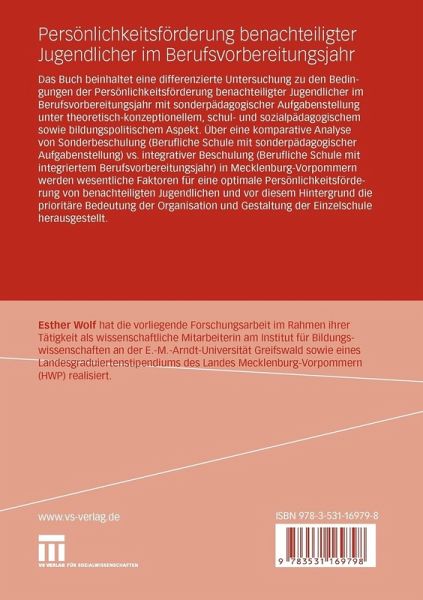 Mit dieser Publikation wird ein wichtiger erziehungswissenschaftlich theore- scher Beitrag zur Klärung der Frage nach der Separierung bzw. der Integration von benachteiligten Jugendlichen in Ausbildungsprozessen sowie ein päda- gisch praktischer Beitrag für die Anlage und Gestaltung der Ausbildung bena- teiligter Jugendlicher im Übergang von der allgemein bildenden Schule in die Berufsausbildung geleistet. Der Anteil der Schüler, der nicht in hinreichendem Maße die Voraussetzungen erfüllt, die für die Aufnahme der Berufsausbildung erforderlich sind, hat zugenommen. Deshalb muss in Erfahrung gebracht werden, unter welchen pädagogischen und institutionellen Bedingungen benachteiligte Schüler sinnvoll und optimal gefördert werden können. Dieser Aufgabe hat sich die Autorin gestellt. Sie schon maßgeblich an Untersuchungen zur Schulsozialarbeit an Beruflichen Schulen mit sonderpä- gogischer Aufgabenstellung von 2002 bis 2004 beteiligt betrachtet nun die Ausbildung von jungen Menschen in Beruflichen Schulen mit sonderpädago- scher Aufgabenstellung und ihre Ausbildung in Beruflichen Schulen mit int- riertem Berufsvorbereitungsjahr unter theoretisch-konzeptionellem, unter sch- und sozialpädagogischem und unter dem bildungspolitischen Aspekt. Durch die empirischen Untersuchungen sollen vor allem Erkenntnisse zu den Bedingungen der Persönlichkeitsförderung benachteiligter Jugendlicher, zu den zweckmäßigen Formen der beruflichen Ausbildung und zur Vorbereitung darauf durch v- schiedene Ausbildungswege differenziert gewonnen werden. Deshalb stehen zwei repräsentative Untersuchungspopulationen zur Verfügung, die dann mite- ander verglichen werden: Schülerinnen und Schüler der Beruflichen Schulen mit sonderpädagogischer Aufgabenstellung sowie Schülerinnen und Schüler an - ruflichen Schulen mit integriertem Berufsvorbereitungsjahr.