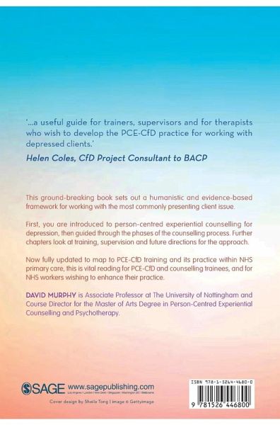 Chapter 1: Introduction Chapter 2: Person-Centred Experiential Therapy Chapter 3: The Person-Centred Experiential Theory of Depression Chapter 4: First Meetings and the Initial Phase Sessions Chapter 5: Early Sessions Phase of PCE-CfD Chapter 6: Middle Phase Sessions Chapter 7: Final Phase and Endings Chapter 8: Training, Supervision & Research Chapter 9: Future Orientations and Conclusions Apendix 1: List of Competencies Appendix 2: Person-Centred & Experiential Psychotherapy Scales (PCEPs) Appendix 3: PCE-CfD Supervision Adherence Scale Appendix 4: Measurement Scales