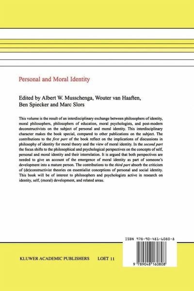 The subject of personal and moral identity is at the centre of interest, not only of academic research within disciplines such as philosophy and psychology, but also of everyday thinking. This is why the Neth erlands School for Research in Practical Philosophy and the Institute for Ethics of the Vrije Universiteit in Amsterdam took the initiative to bring together scholars from various disciplines, interested in the subject. The expert-seminar on 'Personal and Moral Identity' took place from 12-14 January 1999. Financial contributions from the Vrije Universiteit, the Dutch Scientific Organisation (NWO) and the Royal Dutch Academy for the Sciences (KNA W) made the event possible. The chapters in this book either go back to papers presented at the seminar or were written afterwards by participants, inspired by the discussions that took place during the seminar. We are very grateful to Dr. Hendrik Hutter for his assistance in editing the texts and making the manuscript camera-ready.December 2001, The Editors. 1 Introduction Albert W. Musschenga Although scholars studying the identity of persons usually address diverging issues and have different research agendas, there is a grow ing awareness that one may benefit from insights and results present in other disciplines dealing with that subject. This explains the enthu siastic responses to the invitation of the Netherlands School for Research in Practical Philosophy and the Institute for Ethics of the Vrije Universiteit to participate in a seminar on 'Personal and Moral Identity'.