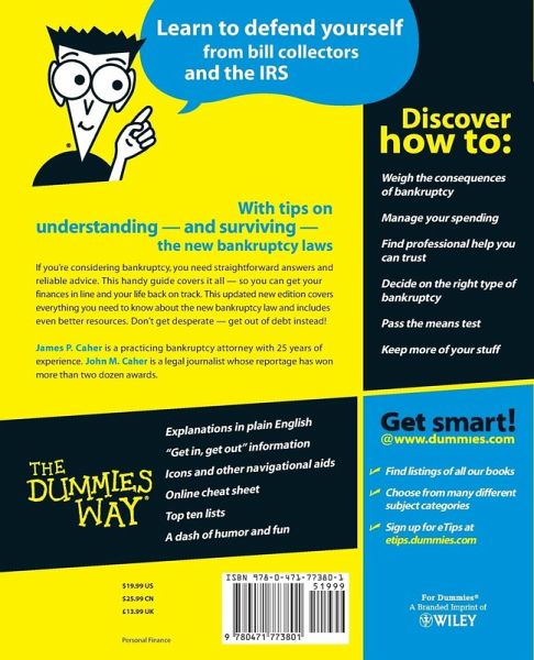 James P. Caher, a practicing attorney with 30 years of experience, is a nationally recognized expert on consumer bankruptcies and authority on the Bankruptcy Abuse Prevention and Consumer Protection Act of 2005. Jim coauthored, with his brother John, Debt Free! Your Guide to Personal Bankruptcy Without Shame (Henry Holt, 1996) and two highly regarded books for lawyers: Discharging Marital Obligations in Bankruptcy (LRP, 1997) and Discharging Credit Card Debts in Bankruptcy (LRP, 1998). In addition, Jim has published scores of articles for bankruptcy professionals and is frequently called upon to analyze and interpret the complicated provisions of the 2005 bankruptcy law. He was labeled the "online guru" by a national legal weekly because of his regular appearances on the Internet as an expert analyst on bankruptcy law. Jim also serves on the editorial board of the American Bankruptcy Institute. Jim graduated from Niagara University and then earned his law degree from Memphis State University Law School, where he was a member of the Law Review and recipient of the American Jurisprudence Award for Excellence in the field of debtor-creditor relations. He filed his first consumer bankruptcy case shortly after graduating in 1975. Jim lives and practices in Eugene, Oregon. John M. Caher is a legal journalist who has written about law and the courts for most of his 25-year career. Currently the Albany bureau chief for the New York Law Journal, John previously was state editor and legal affairs reporter for the Times Union of Albany, New York. His legal reportage has won more than two dozen awards, including prestigious honors from the American Bar Association, the New York State Bar Association, the Erie County Bar Association, and the Associated Press. John coauthored, with his brother Jim, Debt Free! Your Guide to Personal Bankruptcy Without Shame (Henry Holt, 1996). He is the author of King of the Mountain: The Rise, Fall and Redemption of Chief Judge Sol Wachtler (Prometheus Books, 1998). In addition, John was the principal writer assisting former U.S. Treasury Secretary William E. Simon in preparation of his memoirs. Mr. Simon's autobiography, A Time for Reflection, was published in 2003 by Regnery. John is a 1980 graduate of Utica College of Syracuse University, where he received his bachelor's degree in journalism, and a 1993 graduate of Rensselaer Polytechnic Institute, where he earned a master's degree in technical communications/graphics. John lives in Clifton Park, New York.