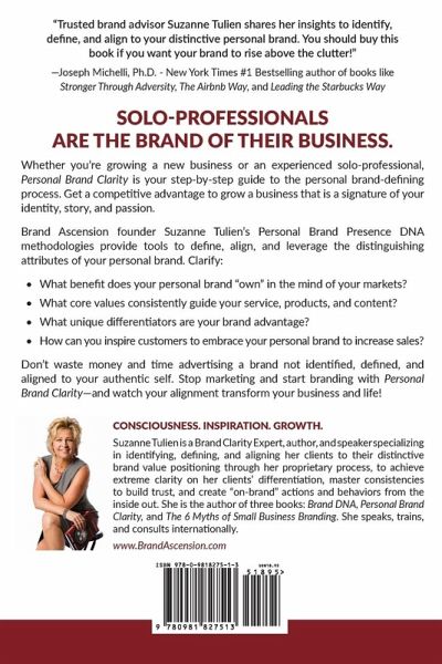 Whether you're growing a new business or an experienced solo-professional, Personal Brand Clarity is your step-by-step consulting guide to the personal brand-defining process. Realize your unique value position and get a competitive advantage to grow a business that is a signature of your identity, story, style, and passion. Better brand development can assign more powerful meaning to your unique value position in every facet of your life! Brand Ascension founder Suzanne Tulien's Personal Brand Presence DNA methodologies provide tools to dig deep to define, align, and leverage the distinguishing attributes of your personal brand. Clarify:What benefit does your personal brand "own" in the mind of your markets? Your original core values that consistently guide your service, products, and content? Your unique differentiators that create and leverage your brand advantage? Your personal brand's unique point of view and what you stand for. How you inspire your prospects and customers to embrace your personal brand to sell more Don't waste money and time advertising a brand not yet fully identified, defined, and aligned to your authentic self. Stop marketing and start branding with Personal Brand Clarity-and watch your alignment transform your sales, business growth, and life!