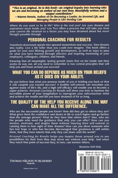 In Personal Coaching for Results, Lou Tice walks you through the process to coach yourself to effectiveness and success, step by step. Using what he wrote here builds your personal effectiveness and then guides you on your way to becoming the credible, influential mentor you have it in you to be.