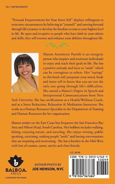 Sharon Antoinette Parrish is an energetic person who inspires and motivates individuals to enjoy and reach their goals in life. She has a positive attitude and loves to "smile" which can be contagious to others. Her "sayings" in this book will jumpstart your mind, body and inner self to know that you are not the only one going through life's difficulties. She earned a Master's Degree in Speech and Interpersonal Communications from New York University. She has certifications as a Health/Wellness Coach, and as a Stress Reduction, Relaxation & Meditation Instructor. She works as a Human Resources Specialist in the Department of Training and Human Resources for her organization. Sharon resides on the East Coast but frequents the San Francisco Bay Area and Hilton Head, South Carolina. Her hobbies includes walking, hiking, enjoying nature, and traveling. She enjoys writing, public speaking, exercising, making people "smile" and having conversations that are inspiring and motivating. She has a brother in the Mid-West with lots of cousins, aunts, uncles and close friends.