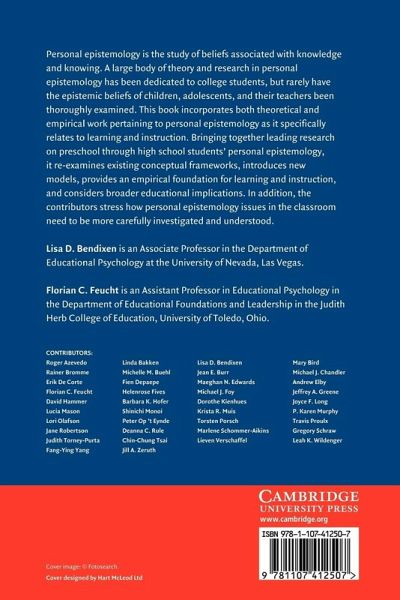 Personal epistemology is the study of beliefs associated with knowledge and knowing. A large body of theory and research in personal epistemology has been dedicated to college students, but rarely have the epistemic beliefs of children, adolescents, and their teachers been thoroughly examined. This book incorporates both theoretical and empirical work pertaining to personal epistemology as it specifically relates to learning and instruction. Bringing together leading research on pre-school through high school students' personal epistemology, it re-examines existing conceptual frameworks, introduces new models, provides an empirical foundation for learning and instruction, and considers broader educational implications. In addition, the contributors stress how personal epistemology issues in the classroom need to be more carefully investigated and understood.