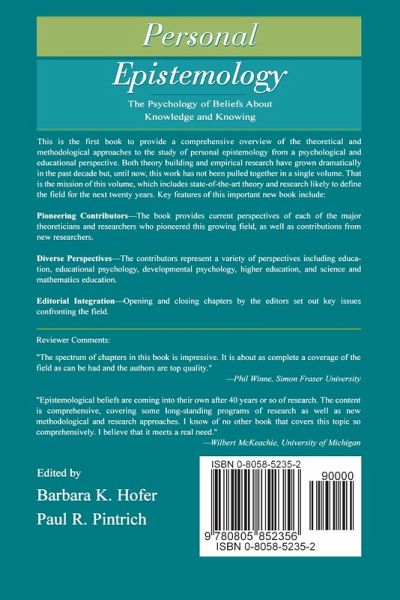 "The book provides a comprehensive overview of the theoretical and methodological approaches to the study of personal epistemology from a psychological and educational perspective....It includes state-of-the-art theory and research likely to define the field for the next twenty years."