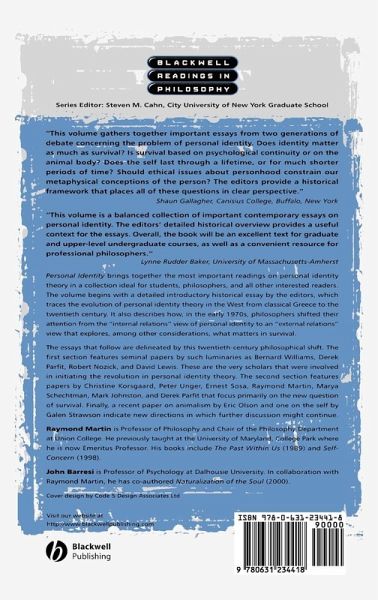 Personal Identity brings together the most important readings on personal identity theory in a collection ideal for students, philosophers, and all other interested readers. The volume begins with a detailed introductory historical essay by the editors, which traces the evolution of personal identity theory in the West from classical Greece to the twentieth century. It also describes how, in the early 1970s, philosophers shifted their attention from the 'internal relations' view of personal identity to an 'external relations' view that explores, among other considerations, what matters in survival. The essays that follow are delineated by this twentieth-century philosophical shift. The first section features seminal papers by such luminaries as Bernard Williams, Derek Parfit, Robert Nozick, and David Lewis. These are the very scholars that were involved in initiating the revolution in personal identity theory. The second section features papers by Christine Korsgaard, Peter Unger, Ernest Sosa, Raymond Martin, Marya Schechtman, Mark Johnston, and Derek Parfit that focus primarily on the new question of survival. Finally, a recent paper on animalism by Eric Olson and one on the self by Galen Strawson indicate new directions in which further discussion might continue.