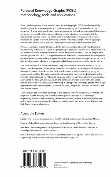 Personal knowledge graphs (PKGs) support the development of innovative digitalized personalized applications, which keep users updated, help them manage their day-to-day activities and facilitate informed decisions. This book systematically explores the global advanced research around PKGs from methodologies to tools and applications.