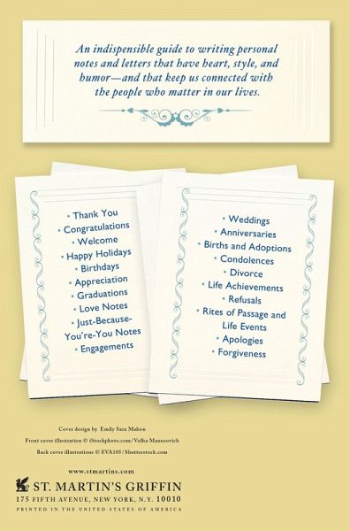Do you dread writing notes to say "Thank you," "I'm sorry," or "Congratulations"? When's the last time you sent a handwritten letter to a faraway friend, just to catch up? What should you write to a grieving friend or colleague? How do you let friends know you're getting a divorce? As our lives get busier and faster-paced, the old-fashioned art of personal correspondence is becoming sadly lost. In this upbeat, wise, and witty guide, journalist and lifestyle expert Sandra Lamb offers a wealth of advice, inspiration, and examples for anyone who wants to add flair, voice, and plain old fun to their letters and notes-as well as anyone who wants to know the etiquette of when and what to write. Using colorful examples and practical advice, the book covers thank yous, congratulations, engagements and weddings, birthdays and anniversaries, births and adoptions, appreciation, love notes, illness and accidents, divorce, condolence, regrets, apologies, and forgiveness. This delightful, indispensable guide helps us rediscover the joy of connecting with others through the simple act of putting pen to paper.