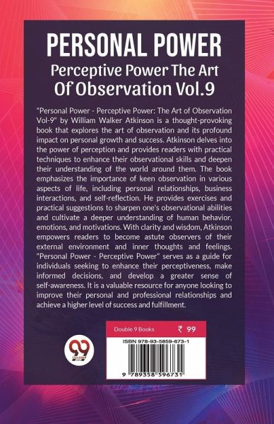 "Personal Power - Perceptive Power: The Art of Observation Vol-9" by William Walker Atkinson is a thought-provoking book that explores the art of observation and its profound impact on personal growth and success. Atkinson delves into the power of perception and provides readers with practical techniques to enhance their observational skills and deepen their understanding of the world around them. The book emphasizes the importance of keen observation in various aspects of life, including personal relationships, business interactions, and self-reflection. He provides exercises and practical suggestions to sharpen one's observational abilities and cultivate a deeper understanding of human behavior, emotions, and motivations. With clarity and wisdom, Atkinson empowers readers to become astute observers of their external environment and inner thoughts and feelings. "Personal Power - Perceptive Power" serves as a guide for individuals seeking to enhance their perceptiveness, make informed decisions, and develop a greater sense of self-awareness. It is a valuable resource for anyone looking to improve their personal and professional relationships and achieve a higher level of success and fulfillment.
