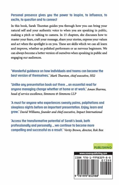 Sarah Thurstan has helped hundreds of speakers get their big moments right in front of a live audience. She coaches leaders, professionals and influencers on how to speak authentically in public and engage their audiences. Drawing on her years of experience as an actor in theatre and film, she develops everyone's unique speaking style, bringing their strengths, their values and their stories to the fore. She is a director of Performance Link, a company that specializes in developing a speaker's personal presence and making them feel comfortable in their own skin about the whole experience of performing.