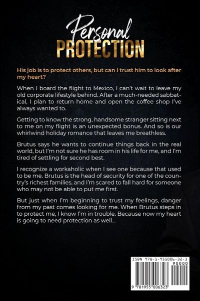 His job is to protect others, but can I trust him to look after my heart? When I board the flight to Mexico, I can't wait to leave my old corporate lifestyle behind. After a much-needed sabbatical, I plan to return home and open the coffee shop I've always wanted to. Getting to know the strong, handsome stranger sitting next to me on my flight is an unexpected bonus. And so is our whirlwind holiday romance that leaves me breathless. Brutus says he wants to continue things back in the real world, but I'm not sure he has room in his life for me, and I'm tired of settling for second best. I recognize a workaholic when I see one because that used to be me. Brutus is the head of security for one of the country's richest families, and I'm scared to fall hard for someone who may not be able to put me first. But just when I'm beginning to trust my feelings, danger from my past comes looking for me. When Brutus steps in to protect me, I know I'm in trouble. Because now my heart is going to need protection as well...