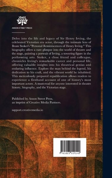 Delve into the life and legacy of Sir Henry Irving, the celebrated Victorian era actor, through the intimate lens of Bram Stoker's "Personal Reminiscences of Henry Irving." This biography offers a rare glimpse into the world of theatre and the stage, painting a portrait of Irving, a towering figure in the performing arts. Stoker, a close friend and colleague, chronicles Irving's remarkable career and personal life, offering valuable insights into his theatrical genius and enduring influence. Explore the man behind the legend, his dedication to his craft, and the vibrant world he inhabited. This meticulously prepared republication allows readers to experience a firsthand account of one of history's most important actors. A must-read for anyone interested in theatre history, biography, and the Victorian stage. This work has been selected by scholars as being culturally important, and is part of the knowledge base of civilization as we know it. This work is in the public domain in the United States of America, and possibly other nations. Within the United States, you may freely copy and distribute this work, as no entity (individual or corporate) has a copyright on the body of the work. Scholars believe, and we concur, that this work is important enough to be preserved, reproduced, and made generally available to the public. We appreciate your support of the preservation process, and thank you for being an important part of keeping this knowledge alive and relevant.