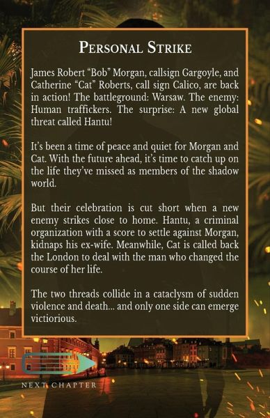 James Robert "Bob" Morgan, callsign Gargoyle, and Catherine "Cat" Roberts, call sign Calico, are back in action! The battleground: Warsaw. The enemy: Human traffickers. The surprise: A new global threat called Hantu! It's been a time of peace and quiet for Morgan and Cat. With the future ahead, it's time to catch up on the life they've missed as members of the shadow world. But their celebration is cut short when a new enemy strikes close to home. Hantu, a criminal organization with a score to settle against Morgan, kidnaps his ex-wife. Meanwhile, Cat is called back the London to deal with the man who changed the course of her life. The two threads collide in a cataclysm of sudden violence and death... and only one side can emerge victiorious.