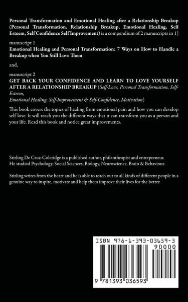 Personal Transformation and Emotional Healing after a Relationship Breakup (Personal Transformation, Relationship Breakup, Emotional Healing, Self Esteem, Self Confidence Self Improvement) is a compendium of 2 manuscripts in 1) manuscript 1 Emotional Healing and Personal Transformation: 7 Ways on How to Handle a Breakup when You Still Love Them and, manuscript 2 GET BACK YOUR CONFIDENCE AND LEARN TO LOVE YOURSELF AFTER A RELATIONSHIP BREAKUP (Self-Love, Personal Transformation, Self-Esteem, Emotional Healing, Self-Improvement & Self-Confidence, Motivation) Books cover the topics of healing from emotional pain and how you can develop self-love. The books will teach you the different ways that it can transform you as a person and your life. Order your copy today and notice great improvements.