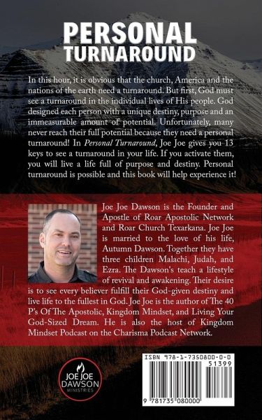 In this hour, it is obvious that the church, America and the nations of the earth need a turnaround. But first, God must see a turnaround in the individual lives of His people. God designed each person with a unique destiny, purpose and an immeasurable amount of potential. Unfortunately, many never reach their full potential because they need a personal turnaround! In Personal Turnaround, Joe Joe gives you 13 keys to see a turnaround in your life. If you activate them, you will live a life full of purpose and destiny. Personal turnaround is possible and this book will help experience it!