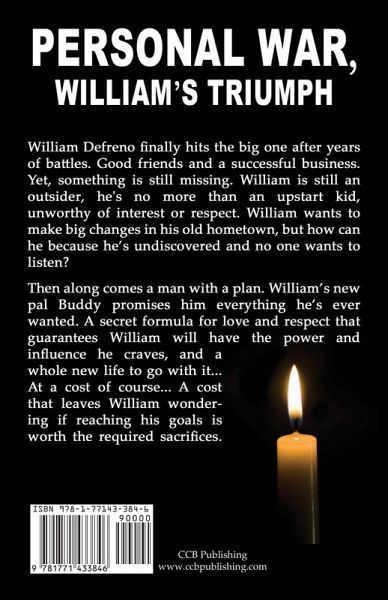 William Defreno finally hits the big one after years of battles. Good friends and a successful business. Yet, something is still missing. William is still an outsider, he's no more than an upstart kid, unworthy of interest or respect. William wants to make big changes in his old hometown, but how can he because he's undiscovered and no one wants to listen. Then along comes a man with a plan. William's new pal Buddy promises him everything he's ever wanted. A secret formula for love and respect that guarantees William will have the power and influence he craves, and a whole new life to go with it... At a cost of course... A cost that leaves William wondering if reaching his goals is worth the required sacrifices. About the Author: Dave Aquino is the author of several novels, including Personal War, Personal War Part 2, Personal War Part 3, Counselor, The Slot Machine and his latest Personal War, William's Triumph. He is working on his next novel.