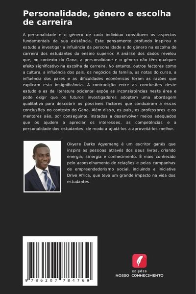A personalidade e o género de cada indivíduo constituem os aspectos fundamentais da sua existência. Este pensamento profundo inspirou o estudo a investigar a influência da personalidade e do género na escolha de carreira dos estudantes do ensino superior. A análise dos dados revelou que, no contexto do Gana, a personalidade e o género não têm qualquer efeito significativo na escolha da carreira. No entanto, outros factores como a cultura, a influência dos pais, os negócios da família, as notas do curso, a influência dos pares e as dificuldades económicas foram as razões que explicam esta insignificância. A contradição entre as conclusões deste estudo e as da literatura ocidental expõe as inconsistências nesta área e pode exigir que os futuros investigadores adoptem uma abordagem qualitativa para descobrir os possíveis factores que conduziram a essas conclusões no contexto do Gana. Além disso, os pais, os professores e os mentores são, por conseguinte, instados a desenvolver meios adequados que os ajudem a apreciar os interesses, as competências e a personalidade dos estudantes, de modo a ajudá-los a aproveitá-los melhor.