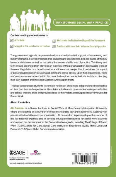 The government agenda on Personalisation and self-directed support is fast-moving and rapidly changing. It is vital therefore that students and practitioners alike are aware of the key issues and debates, as well as the policy that surrounds this area of practice. This timely and fully revised second edition provides an overview of the personalisation agenda and looks at the recent legislation in a broad historical and theoretical perspective. This approach will provide opportunities for students to consider the changes to the social work role and to evaluate the impact of this for service users and as practitioners.