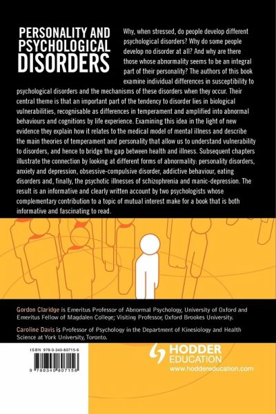 Personality and Psychological Disorders aims to integrate evidence and idea from healthy personality and temperament on the one hand and psychological disorders on the other. This is achieved by viewing personality traits as predispositions to disorder, and by questioning how far the causes of various disorders can be seen as an extension or exaggeration of processes underlying normal personality or temperament. This is a second level textbook for undergraduate students of psychology, but is also recommended for health professionals and their trainees, psychiatrists, clinical psychologists and nurses.