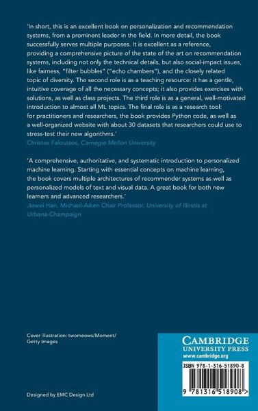 Every day we interact with machine learning systems offering individualized predictions for our entertainment, social connections, purchases, or health. These involve several modalities of data, from sequences of clicks to text, images, and social interactions. This book introduces common principles and methods that underpin the design of personalized predictive models for a variety of settings and modalities. The book begins by revising 'traditional' machine learning models, focusing on adapting them to settings involving user data, then presents techniques based on advanced principles such as matrix factorization, deep learning, and generative modeling, and concludes with a detailed study of the consequences and risks of deploying personalized predictive systems. A series of case studies in domains ranging from e-commerce to health plus hands-on projects and code examples will give readers understanding and experience with large-scale real-world datasets and the ability to design models and systems for a wide range of applications.