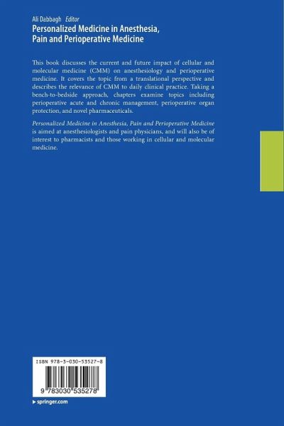 This book discusses the current and future impact of cellular and molecular medicine (CMM) on anesthesiology and perioperative medicine. It covers the topic from a translational perspective and describes the relevance of CMM to daily clinical practice. Taking a bench-to-bedside approach, chapters examine topics including perioperative acute and chronic management, perioperative organ protection, and novel pharmaceuticals.