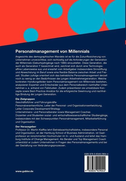 Angesichts des demographischen Wandels ist es für die Zukunftssicherung und den Erfolg von Unternehmen unverzichtbar, sich rechtzeitig auf die Anforderungen der nachwachsenden Generation der Millennials einzustellen. Diese Generation, die auch als Generation Y bezeichnet wird, zeichnet sich durch eine Technologie-affine Lebensweise aus und erwartet vom Arbeitgeber Sinnstiftung und Abwechslung im Beruf sowie eine flexible Balance zwischen Arbeit und Freizeit. Studien zufolge ist das betriebliche Personalmanagement derzeit noch kaum an den Bedürfnissen der jungen Arbeitnehmergeneration orientiert. Welche konkreten Handlungsfelder beim Personalmanagement von Millennials bestehen, analysieren Entscheider aus dem Personalbereich namhafter Unternehmen anhand von Fallstudien und Erfahrungen. Zudem werden Konzepte sowie erste Best-Practice-Ansätze für die erfolgreiche Gewinnung und Bindung der jungen Generation aufgezeigt.