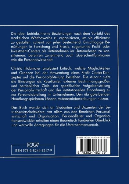 Bemühungen, sogenannte Profit- oder Investment-Centers als Unternehmen im Unternehmen zu konstituieren, berühren zunehmend auch Querschnittfunktionen wie die Personalwirtschaft.