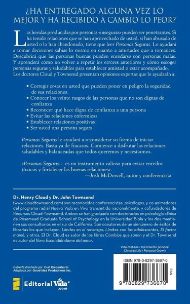 Too many of us have invested ourselves into relationships that left us deeply wounded. We've been abandoned or taken advantage of, and left with little to show for what we've given. We've lost our sense of security and personal value in the process. And what's worse, we tend to either repeat the same mistakes of judgment over and over . . . Or else lock the doors of our hearts entirely and throw away the key. Why do we choose the wrong people to get involved with? Is it possible to change? And if so, where does one begin? Drs. Henry Cloud and John Townsend offer solid guidance for making safe choices in relationships, from friendships to romance. They help identify the nurturing people we all need in our lives, as well as ones we need to learn to avoid. 'Safe People' will help you recognize 20 traits of relationally untrustworthy people. Discover what makes some people relationally safe, and how to avoid unhealthy entanglements. You'll learn about things within yourself that jeopardize your relational security. You'll find out what to do and what not to do to develop a balanced, healthy approach to relationships.