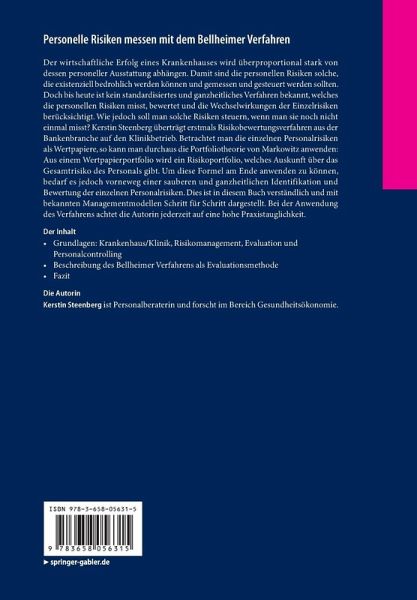 Der wirtschaftliche Erfolg eines Krankenhauses wird überproportional stark von dessen personeller Ausstattung abhängen. Damit sind die personellen Risiken solche, die existenziell bedrohlich werden können und gemessen und gesteuert werden müssen. Doch bis heute ist kein standardisiertes und ganzheitliches Verfahren bekannt, welches die personellen Risiken misst und bewertet. Wie jedoch soll man solche Risiken steuern, wenn man sie noch nicht mal misst? In der Bankbranche hat man längst für alle Risiken Mess- und Bewertungsverfahren entwickelt. Kerstin Steenberg überträgt diese Verfahren vom Bank- auf den Klinikbetrieb, wobei sie jederzeit auf die Praxistauglichkeit ihrer Lösungen im Auge behält. Schließlich müssen mit den Methoden und Instrumenten, die im Krankenhausalltag durchführbar sind. Und sie müssen vor allem die Wechselwirkungen der einzelnen Risiken berücksichtigen können. Betrachtet man die einzelnen Personalrisiken als Wertpapiere, so kann man durchaus die Portfoliotheorie von Markowitz übertragen: Aus einem Wertpapierportfolio wird ein Risikoportfolio. Um diese Formel am Ende anwenden zu können, bedarf es jedoch vorneweg einer sauberen und ganzheitlichen Identifikation und Bewertung der einzelnen Personalrisiken. Dies ist in diesem Buch verständlich und mit bekannten Managementmodellen dargestellt.