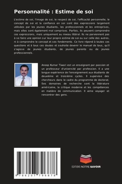 L'estime de soi, l'image de soi, le respect de soi, l'efficacité personnelle, le concept de soi et la confiance en soi sont des expressions largement utilisées par les jeunes étudiants, les professionnels et les entreprises, mais elles sont également mal comprises. Parfois, ils peuvent comprendre ces expressions, mais uniquement au niveau littéral. Ils ne parviennent pas à se faire une opinion sur leur propre estime de soi ou sur celle des autres, ni à comprendre le concept et ses fondements. Ce livre répond à toutes ces questions et à tous ces doutes et souhaite devenir le manuel de tous, qu'il s'agisse de jeunes étudiants, de jeunes parents ou de jeunes professionnels.