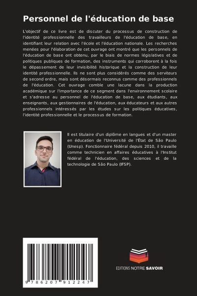 L'objectif de ce livre est de discuter du processus de construction de l'identité professionnelle des travailleurs de l'éducation de base, en identifiant leur relation avec l'école et l'éducation nationale. Les recherches menées pour l'élaboration de cet ouvrage ont montré que les personnels de l'éducation de base ont obtenu, par le biais de normes législatives et de politiques publiques de formation, des instruments qui corroborent à la fois le dépassement de leur invisibilité historique et la construction de leur identité professionnelle. Ils ne sont plus considérés comme des serviteurs de second ordre, mais sont désormais reconnus comme des professionnels de l'éducation. Cet ouvrage comble une lacune dans la production académique sur l'importance de ce segment dans l'environnement scolaire et s'adresse au personnel de l'éducation de base, aux étudiants, aux enseignants, aux gestionnaires de l'éducation, aux éducateurs et aux autres professionnels intéressés par les études sur les politiques éducatives, l'identité professionnelle et le processus de formation.