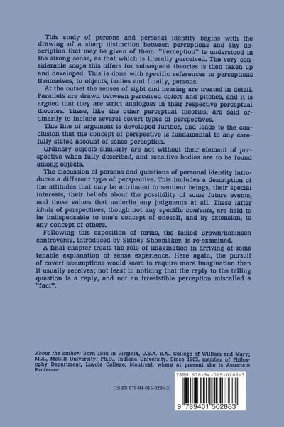 This volume grew out of a dissatisfaction with some issues that seem to be rooted in the Empiricist tradition. At least since Locke, that which is perceived has enjoyed a major share in any systematic account of what we claim to know. A main purpose of this study therefore is first to distinguish, and subsequently to relate, what can be perceived and what can be under stood. To this end, the account of persons and personal identity begins with a description of selected types of sense perceptions. While writing a good part of the discussion on vision, I had the advantage of questioning Dr. P. B. Loder about the properties of light. She not only clarified some issues, but prevented several errors from creeping into the text, a result for which I am very grateful. I should like also to express my appreciation to Mrs. G. K. Stamm-Okkinga, who provided hospitality and a friendly interest from the beginning of this study. Finally I wish to thank Miss I. Ris and Mr. W. de Regt for theircareful and resourceful preparation of the typescript.